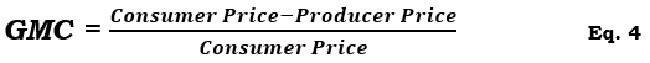 For this study, the Gross Margin of Commercialization (GMC) was calculated following Espinosa et al. (2008), in where it is defined as the difference between the price paid by the consumer and the one received by the farmer. This was calculated using the following equation: