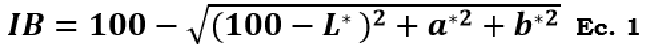 A partir de las determinaciones de los parámetros de CS: L*, a* y b* se calculó el índice de blancura (IB) de la carne: