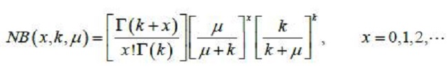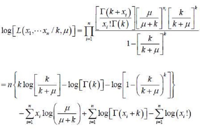 (Ec. 5)La estimación de μ y k se hizo maximizando la verosimilitud de la cual es: