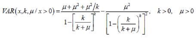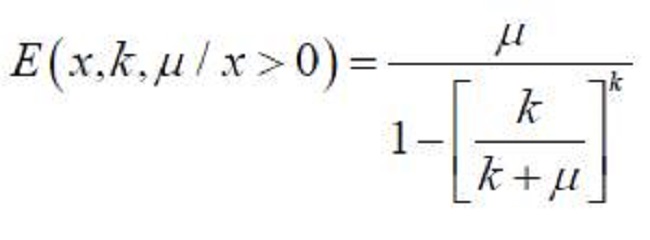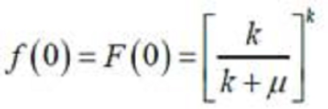 (Ec. 1)Una parametrización de la distribución binomial negativa (Lloyd-Smith, 2007), evaluando la ecuación en el valor cero (0) se tiene,