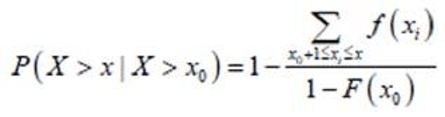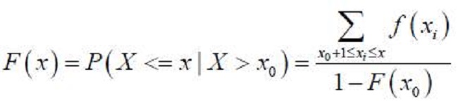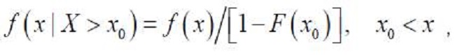 (Ec. 2)Ahora, por la probabilidad condicional de X , dado X > x0, x0 fijo se tiene (Hogg et al., 2019):