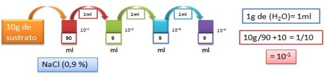 La técnica se fundamenta en realizar diluciones en serie base 10, tomando 10 g de las muestras de suelo rizosférico para suspenderlos en 90 ml de agua destilada estéril, según lo recomendado por Novo (2009) (Figura 1).