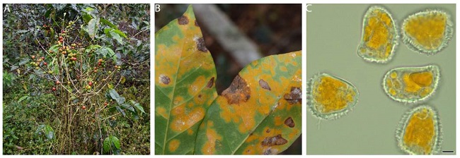 We used a morphological and molecular approach based on a phylogenetic species concept to identify this rust fungus in the localities of Oxapampa (Pasco), Satipo, and Chanchamayo (Junín), and report its spread through coffee-growing areas. Knowledge of disease etiology and distribution of the pathogen is important for integrated management strategies, both of which rely on accurate identification of the causal agent.