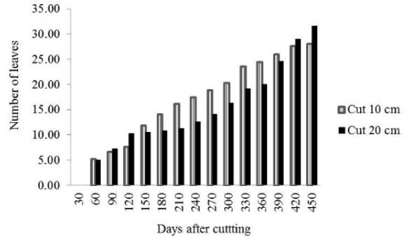 Moreno-Medina et al. (2016) obtained similar results in a study carried out with differents height of cutting in Rubus alpinus Macfad, showing greater branch regeneration and a biggest amount of leaves at the longer cut. This was observed in this study when the pruning was performed at 20 cm. Also, according to Chibinga et al. (2016) if the plant is cut in a bigger height, causing less stress, because fewer material is removed, it will be more exposed to the light and therefore will generate more shoots.