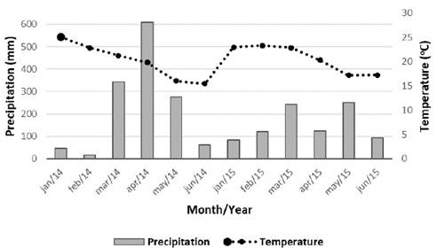 The climate of the region is of the type Cfa according to the classification of Koppen, with annual average temperature around 19 °C, average rainfall between 1800 and 2000 mm and average altitude of 413 m. During the meteorological conditions provided, forecast and temperature were from the automatic station of Santo Augusto/RS and data recorded as the periods of conduction of this experiment, as seen in the figure of this experiment, as seen in Figure 1.