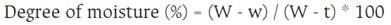 W = initial weight (weight of the container and its lid plus the weight of the moist seed); w = final weight (weight of the container and its lid plus the weight of the dry seed); t = tare (weight of the container with its lid).