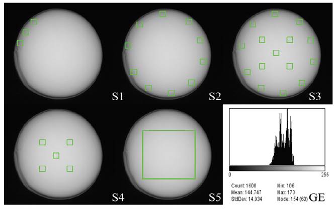 Radiographic images of the seeds of each lot at each hydration level were processed by the lmageJ2 software using the gray scale histogram of the seed structures. For that, each seed was analyzed using five analysis systems (S); S1- embryonic axis region; S2-region of the integument; S3-integument region + cotyledons; S4-points in the cotyledon region, and S5-the entire cotyledon region (Figure 1). The results were expressed in gray scale/ pixel values (values between 0 and 255) (Figure 1).