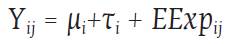 τi,: efecto del i-ésimo tratamiento y EExpij: error experimental de la i-ésima unidad experimental de la j-ésima observación.