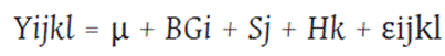 Data analysis was performed using PROC MIXED of SAS (version 8.02, SAS Institute Inc., Cary, NC, USA) using the following model: