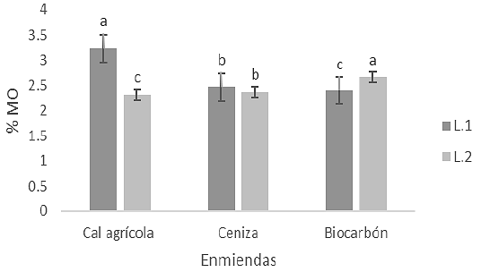 Influencia de las enmiendas sobre la materia orgánica (% MO)