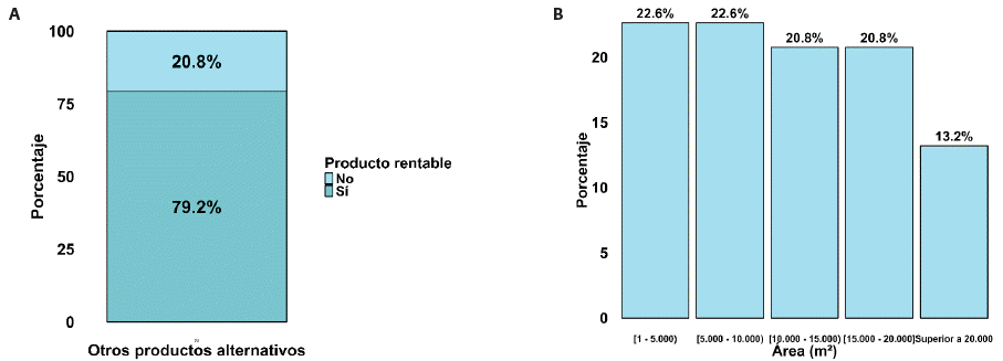 Se identificó que el 86.8 % de las áreas de cultivo son menores a 2 hectáreas, lo que plantea limitaciones para la sostenibilidad a largo plazo debido a restricciones financieras y tecnológicas. Esta situación se ve agravada por la dependencia de la mano de obra familiar y la prevalencia de sistemas de producción tradicionales, que pueden obstaculizar la implementación de prácticas más eficientes y sostenibles.