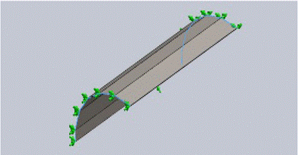 Para evaluar y visualizar las tensiones absorbidas por cada escudo se diseñaron ambas propuestas en el Software Soliworks 2017. Para la evaluación del impacto en los escudos se simuló el impacto de un objeto de igual dimensión que el capítulo del girasol, pero con una densidad similar a la del cultivo (densidad del material de madera balsa isotrópico elástico lineal); el módulo elástico del objeto fue de 3e+009 N m^-2. El estudio fue de carácter no lineal - dinámico y los objetos definidos en malla sólida. Se establecieron los parámetros cinemáticos en un impacto del escudo sobre el capítulo con una velocidad constante de 6.0 km/h como parte móvil, mientras que el capítulo se hallaba fijo hasta el momento del impacto. Las condiciones del choque son sin penetración, es decir, es un choque elástico en el cual los objetos no se fusionan.