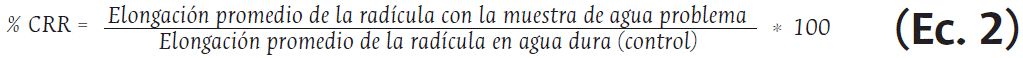 Pasados los 5 días de germinación, se contabilizó la cantidad de semillas germinadas en cada tratamiento y con la ayuda de un vernier se midieron la longitud de la radícula y del hipocótilo de cada planta teniendo como criterio germinativo la aparición notable de la radícula. Se calcularon los porcentajes de germinación relativa de las semillas (GRS) y el crecimiento relativo de la radícula (CRR) para así determinar el índice de germinación (IG) de los tratamientos de acuerdo con las ecuaciones (1), (2) y (3) planteadas por Tiquia (2000).