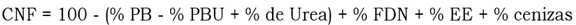 Donde PBU = PB venida de la urea. Si la muestra no presenta urea, se asume que los valores de PBU y urea serán iguales a 0.