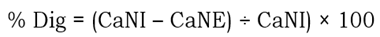 Donde % Dig = porcentaje de digestibilidad; CaNI = cantidad ingerida de nutrientes; y CaNE = cantidad excretada de nutrientes.
