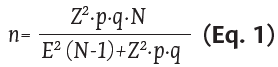 Where n represents the sample size, p is the probability of success (set at 87.7 % due to the rural setting and greater dispersion), q is the probability of failure (12.3 %), E is the margin of error, N is the population size (112), and Z is the confidence level (set at 1.96 for a confidence level of 1-a = 95 %). According to the final sample size, the margin of error was redetermined as 14 %.