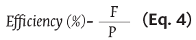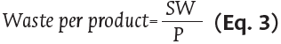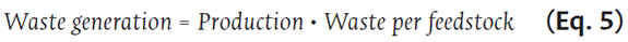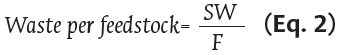 The rates of waste generation per feedstock and product, and feedstock efficiency, were calculated using Equations 2, 3 and 4, respectively.