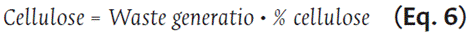 Here, SW refers to the monthly volume of solid waste generated (in tons), F is the monthly volume of feedstock, and P is the monthly production volume (both in tons). Equations 5 and 6 were used to estimate waste and cellulose generation.