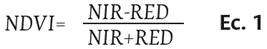 De igual forma, a partir de los ráster de los vuelos multiespectrales se determinó el índice de vegetación de diferencia normalizado (NDVI) con la Ecuación 1 (Jiang et al., 2021) el cual es ilustrado en la Figura 2. En cada visita a campo se obtuvieron el promedio y la desviación estándar de NDVI para cada híbrido.