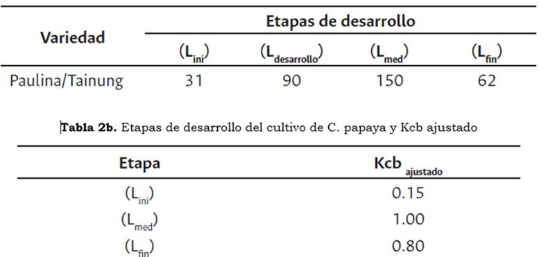 Es importante continuar con la validación de la duración de las etapas y los valores de Kcb para otros híbridos de C. papaya, así como también evaluar condiciones ambientales diferentes.
