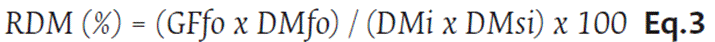 Total dry matter recovery was determined by the difference between the gross weight of dry matter at ensiling and at opening, in relation to the amount of dry matter ensiled, according to Equation 3: