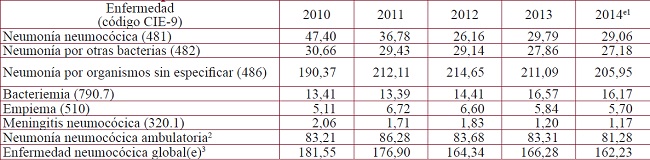 Las infecciones causadas por el Streptococcus pneumoniae en el adulto tienen repercusiones importantes en la salud de la población, ocasionan abundantes intervenciones sanitarias y son responsables de un significativo número de muertes en diversos grupos de pacientes1-4. Las enfermedades más frecuentes asociadas con esta bacteria son la neumonía, la bacteriemia, el empiema y la meningitis5.