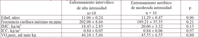 Como era esperado para establecer diferentes protocolos de entrenamiento en cada grupo, estos tenían similares características generales en la línea base.