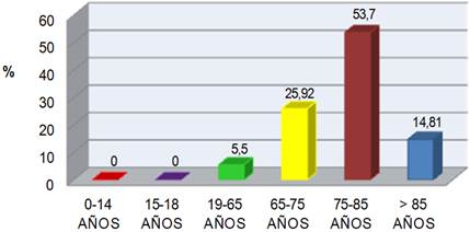 La distribución por edades de los pacientes que presentaron RAM se presenta en la figura 1.