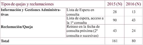 Fuente de datos: La información sobre listas de esperas se obtuvo del cuadro de mandos de Control de Gestión del centro y las quejas y reclamaciones del Servicio de Atención al Usuario.
