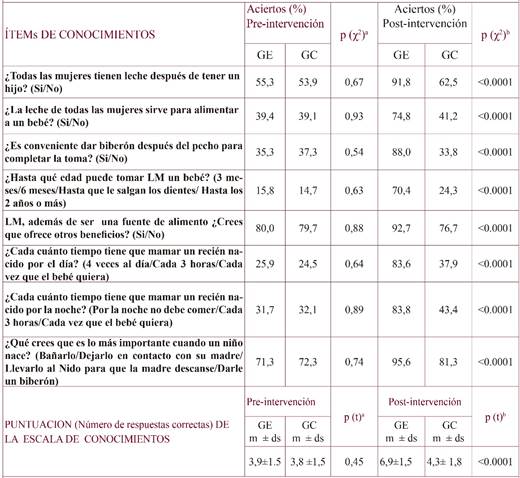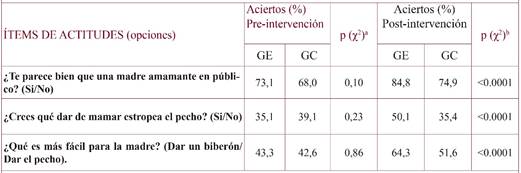 Eficacia de una intervención para mejorar conocimientos y actitudes sobre lactancia materna en adolescentes(*)