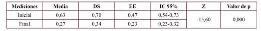 El promedio del índice de placa fue menor después de 72 meses de intervención (p<0.05) (tabla 2).