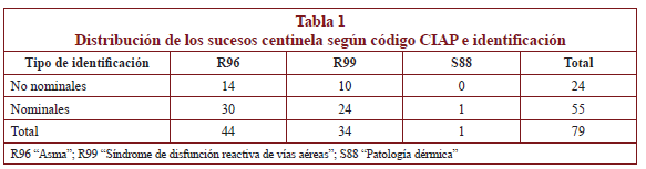Se consideró suceso centinela por posible asma ocupacional las notificadas desde los centros de Atención Primaria con los códigos CIAP2 (Codificación Internacional de Atención Primaria)13: R96 (asma) y R99 (síndrome de disfunción reactiva de vías aéreas). Mediante un sistema de alerta en una aplicación informática específica se comunicaron los sucesos a la unidad de salud laboral, diferenciándose entre nominales y no nominales, según el paciente dé o no el consentimiento para que sea investigado e intervenir en su medio laboral.