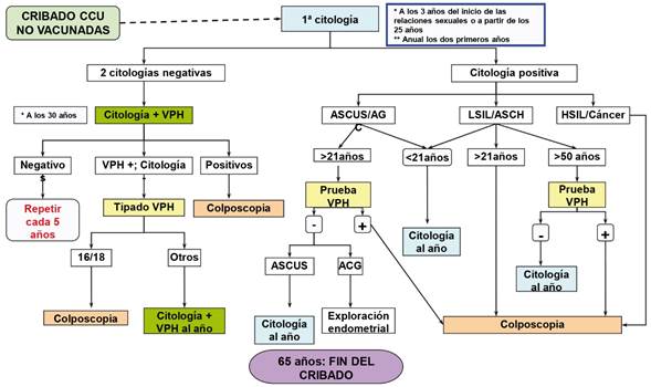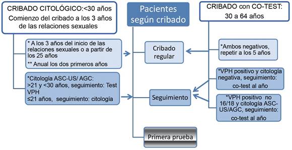 La presencia necesaria del virus del Papiloma humano (VPH) para el desarrollo del cáncer de cérvix uterino (CCU)1 ha llevado a las sociedades científicas a incluir el test del virus del papiloma de alto riesgo (VPH-AR) en el cribado, combinado o no con la citología ginecológica. Se denomina co-test (doble test) a la realización conjunta de la citología y test del VPH-AR2.