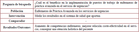 Actualmente la EPA es un elemento poco reconocido en nuestro país. Partiendo de una situación en España que hace necesario un cambio en el funcionamiento de los servicios de urgencias, y ante la falta de revisiones sistemáticas que aúnen la evidencia sobre la EPA en estos servicios, se elabora esta revisión sistemática16,17. El objetivo principal fue mostrar la evidencia disponible sobre los resultados que aporta este modelo a los servicios de atención urgente (hospitalarios o de atención primaria) para una futura implementación del modelo en nuestro sistema sanitario. Como objetivos secundarios se buscó: mostrar los resultados coste-efectivos según los indicadores de calidad establecidos en un servicio de urgencias; estudiar el grado de satisfacción del paciente con la atención de EPA; informar sobre las implicaciones de este modelo para la seguridad del paciente y enumerar las competencias de enfermería que conllevaría la implementación del modelo EPA en el servicio de urgencias.