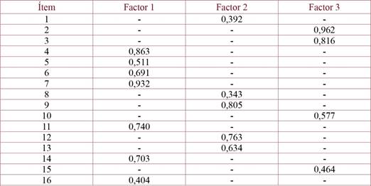 En relación con el análisis factorial exploratorio, los datos del índice Kaiser-Meyer-Olkin y la prueba de esfericidad de Bartlett fueron 0,90 y χ2=2449; p<0,001, respectivamente. Por tanto, la matriz de ínter-correlaciones entre los ítems fue apropiada para la realización del análisis factorial exploratorio. Los resultados señalaron 3 factores que explican el 79,38% de la varianza total. El primer factor explicó un 57,39%, el segundo un 15,28% y el tercero un 6,72%. Se obtuvo un Goodness of Fit Index (GFI) de 0,99. En la tabla 3 se muestran las saturaciones factoriales de cada ítem y su asociación con cada dimensión. Los ítems 4, 5, 6, 7, 11, 14 y 16 se agruparon conformando la primera dimensión (Características de las vacunas y formación), los ítems 1, 8, 9, 12 y 13 se agruparon en la segunda dimensión (Influencia de los iguales y organización de la actividad profesional) y los ítems 2, 3, 10 y 15 en la tercera dimensión (Sensibilidad a premios/sanciones). La media y desviación típica de la primera dimensión fue 16,55±8,4, para la segunda dimensión 11,1±6,66 y para la tercera dimensión 4,93±4,74. Las correlaciones entre las dimensiones 1 y 2 fueron de r=0,718 (p<0,001), entre la dimensión 1 y 3 (r=0,450; p<0,001) y entre la dimensión 2 y 3 (r=0,599; p<0,001). En relación con la fiabilidad, el alfa ordinal para la dimensión 1 fue de 0,80, para la dimensión 2 de 0,72, para la dimensión 3 de 0,79 y para el CAPSVA de 0,79. El test-retest registró un valor de r=0,804 (p<0,001).
