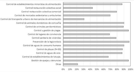 Methods: Descriptive study based on a survey to public health officers in the 119 municipalities above 10,000 population in Catalonia, excluding the city of Barcelona. The survey was conducted between May and October 2016, with 103 municipalities (86.6%) reporting on their services in 2015, prior to the survey. Data were collected and descriptive analyses performed.