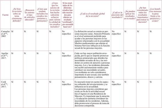 A pesar de que estudios previos destacan la consideración negativa general, a nivel social, sobre la sexualidad en las personas mayores, los resultados de esta revisión muestran que éstas consideran la sexualidad como algo positivo y como un deseo que siguen queriendo expresar en esta etapa de su vida. Además, las personas mayores consideran como barreras para la expresión de su deseo sexual los estereotipos sociales hacia la sexualidad en esta etapa vital, la falta de intimidad y la asociación de la sexualidad con la procreación o bien con la obligación marital. Asimismo, el miedo de las personas mayores a los prejuicios de quienes les rodean (familia o personal de las instituciones donde residen) es una barrera para la expresión de su sexualidad.