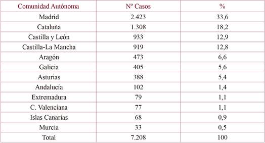 En cuanto a la distribución del número de pacientes que aporta cada región al RNFC, destaca la alta participación de comunidades autónomas con experiencia previa en la realización de registros regionales, como Madrid, Cataluña y Castilla y León19,20,21,22.