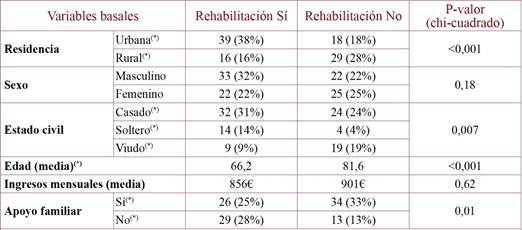 Conclusions: The results show the existence of very unequal access variables to comprehensive rehabilitation, with the consequences of loss of quality of life and impossibility of functional recovery that this implies, both for stroke patients of advanced age and for patients residing in rural areas.
