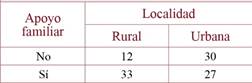 Un cuarto factor asociado al acceso a la rehabilitación integral fue el apoyo familiar (p=0,018). En la tabla 2 se muestra que el apoyo familiar se asoció en mayor medida a zona rural que a zona urbana.