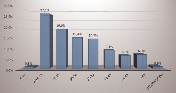 El 46,7% de las personas a las que se les realizaron las pruebas tenía menos de 30 años, y el 27,1% entre 18 y 24 años (figura 3).