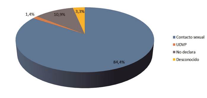 Cabe destacar que una amplia proporción de los solicitantes de la prueba no declaran la práctica de riesgo (10,9%), cifra superior que en los estudios comparados previamente (2,6-6%). La causa puede estar en relación con un sesgo en el registro y en las características de la información solicitada, lo que da lugar a que los usuarios prefieran no contestar y/o que presenten temor a la no confidencialidad de los datos.