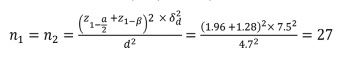 Based on a study performed by Edraki et al. in 201417, the values were considered as d =4.7, δ. =7.5, α =0.05 and β =0.2. Considering dropout rate of 25%, the sample size was estimated 70 people (35 persons for each Group)