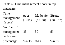The total score of subjects obtained from time management test showed that the number of top and middle nursing managers had moderate skills in time management (Table 4).