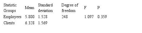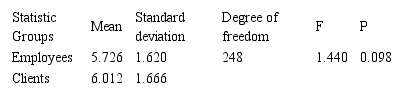 Based on the results of table 4, Levin test is not significant. Therefore, there is homogeneity of variance. Given the assumptions of sample distribution normality and variance homogeneity and to compare the ideas of employees and clients, parametric tests can be used.
