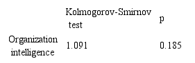 The Cronbach’s alpha coefficient of the questionnaire has been stated as 0.87 by Aghahosseini in 2010. This coefficient was also calculated by the researcher. On this basis, the researcher randomly distributed 30 questionnaires in the population. Calculating the variance of this sample, according to Cronbach’s alpha of organizational multiple intelligence questionnaire, 0.87 has been obtained. To test the hypotheses of the study, Kolmogorov-Smirnov test is first used to ensure the normal distribution of sample and Levin test to ensure the variance convergence. In case of meeting these prerequisites, to compare the mean of two groups of employees and clients, independent sample t-test and to compare the components of intelligence in employees and clients, ANOVA analysis test will be used. In case of the significance of mean difference (variance analysis), Scheffe post hoc test is used. The statistical methods above are conducted in SPSS software version 19 in error level of 0.05.