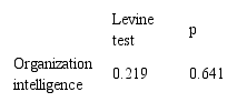 Table 1. The comparison between the mean of organization intelligence scores according to employees.