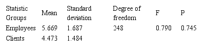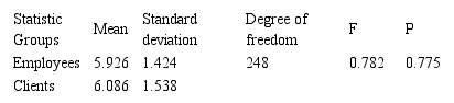 As the data of table 5 indicates, based on the covariance analysis test, there is not significant difference between the attitudes of employees and clients towards systematic intelligence. (p=0.775)