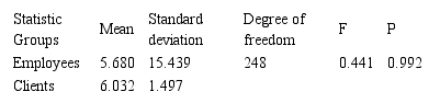 As the results indicated, there is not significant difference between the attitudes of employees and clients towards emotional intelligence. (p=0.775). This finding is consistent with a part of studies by Khodadadi (2007), Hala (2000) and Ziaoddini (2009) and not consistent with Salasel (2009). It might be because of the population. Salasel did his study on citizens while this study has been conducted on a sport organization.