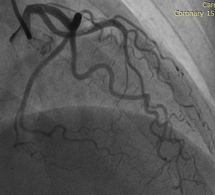 An example of spontaneous reperfusion in the anterior interventricular artery. Complicated proximal plaque and stent placing result.